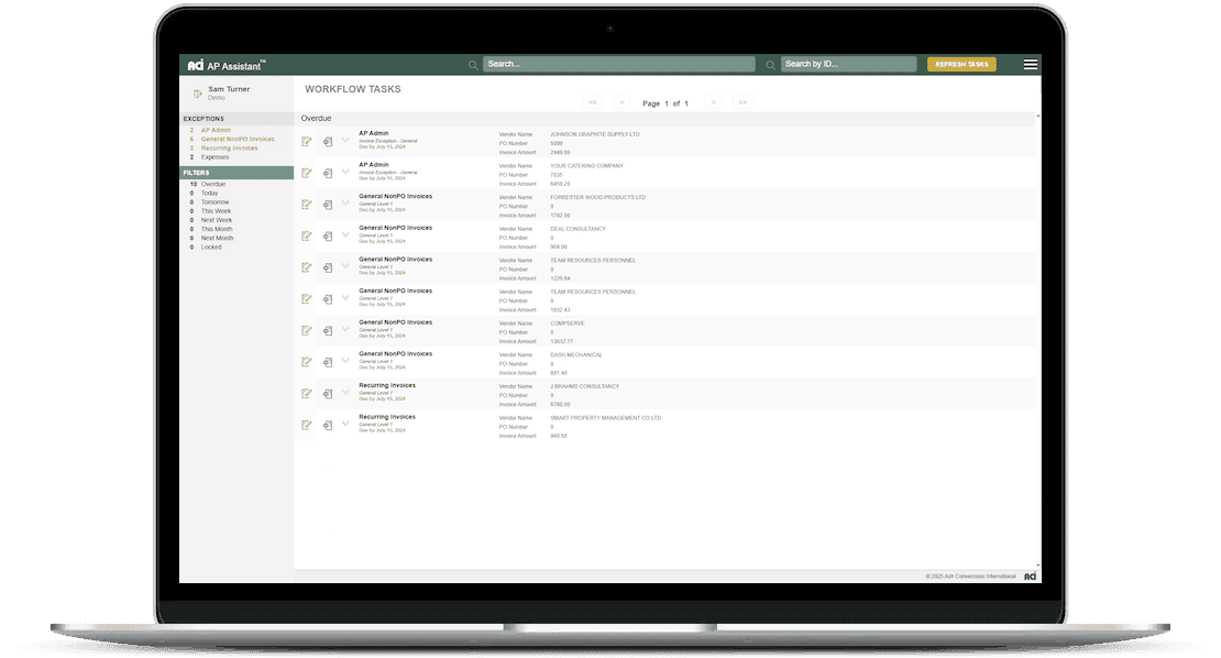 AP Assistant™ handles the entire invoice approval process including image & data capture, data validation (including 3-way matching), invoice routing and approval. AP Assistant™ will move your AP department closer to touchless invoice processing.